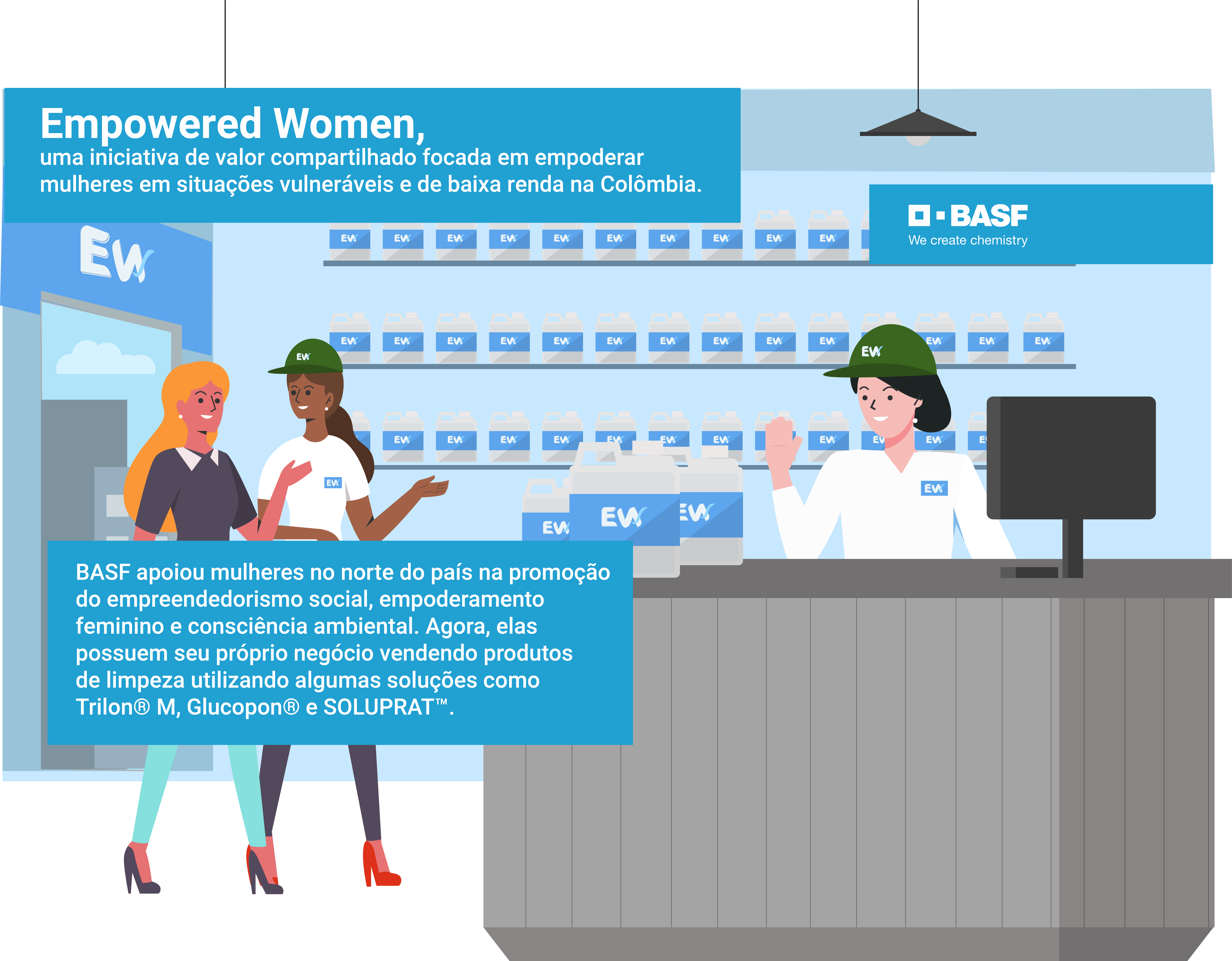 Nesse sentido, o Empowered Women é uma iniciativa de valor compartilhado focada em empoderar mulheres de diferentes situações vulneráveis e de baixa renda na cidade de Santa Marta, na região Norte da Colômbia, que se tornou um exemplo de promoção do empreendedorismo social, do empoderamento feminino e da consciência ambiental, a partir de um trabalho conjunto que durou mais de dois anos entre a Asociación de Mujeres Empoderadas (EWA) de Santa Marta e a BASF.