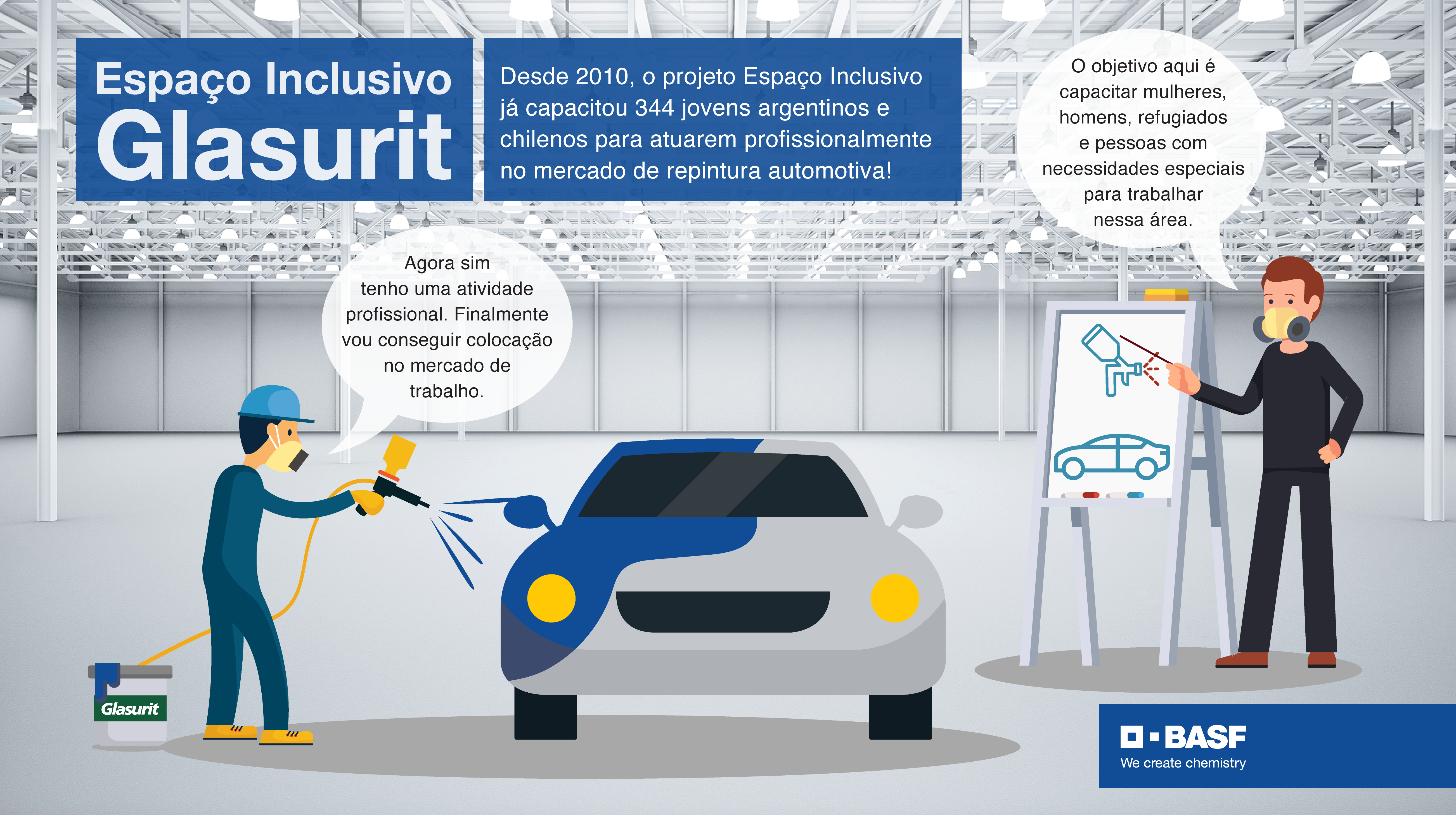 A entrada de jovens no mercado de trabalho pode ser bem difícil. Ainda mais se considerarmos aqueles com poucas oportunidades de estudo, o que dificulta ainda mais a possibilidade de encontrarem uma profissão. Com um olhar atento às necessidades socioeconômicas, em 2010 a unidade chilena da BASF em Santiago, por meio de sua equipe de Glasurit, marca de tintas automotivas, observou uma carência nesse mercado: a falta de profissionais qualificados.