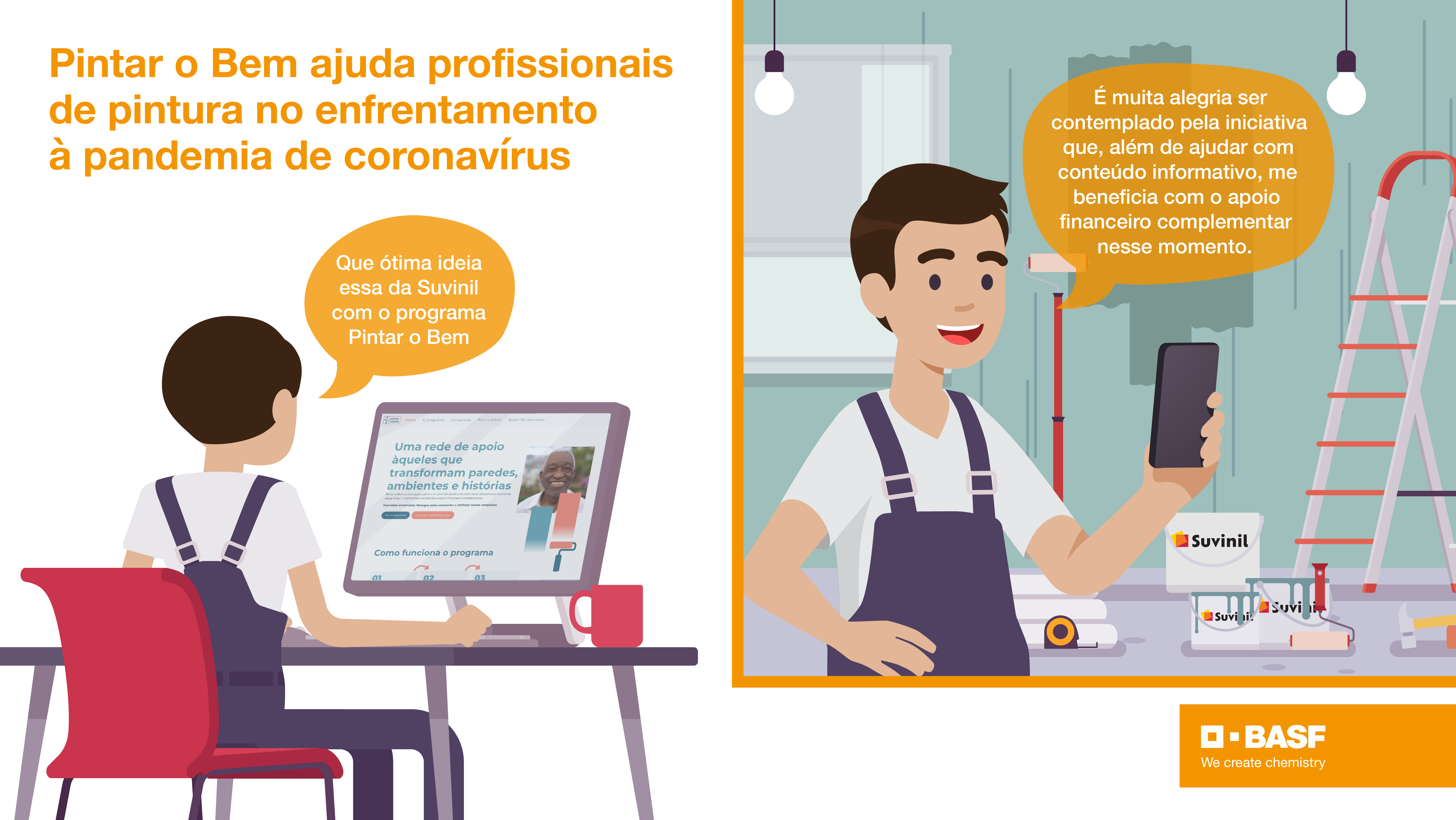 A iniciativa da Suvinil com o programa Pintar o Bem, durante o período de pandemia provocada pela Covid-19, reforça o Jeito E da BASF e destaca a importância de associar produtividade E sustentabilidade. Dessa forma, a ação que auxiliou os pintores e pintoras do país E colaborou com a entrega de conteúdos relevantes mostra a importância de mobilizar esforços E ajudar quem precisa.