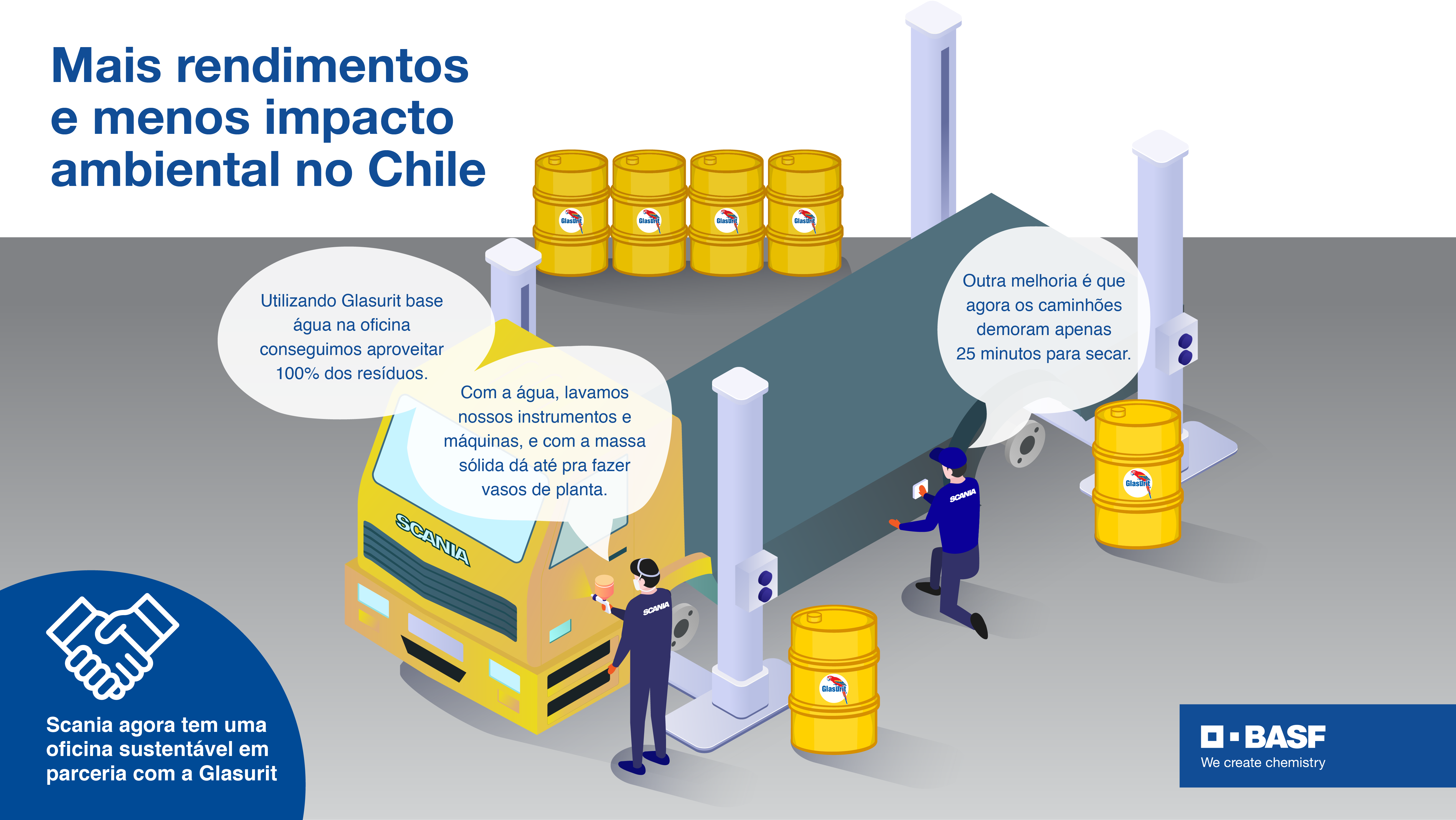 Tanto a Scania quanto a BASF, com sua linha Glasurit, têm presença mundial e o objetivo de desenvolver e promover projetos cada vez mais sustentáveis nas localidades que estão inseridas.