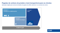 Enquanto a BASF trabalha continuamente para atingir o seu objetivo de crescimento neutro em CO2 até 2030, cada vez mais clientes estão tomando decisões de compra ambientalmente conscientes. Portanto, a BASF desenvolveu uma aplicação digital para calcular os processos de PCPs do berço ao portão para os seus 45.000 produtos de venda. Até o final de 2021, a BASF poderá fornecer PCPs para o seu portfólio global. Desse modo, os clientes receberão informações valiosas sobre a medida em que os materiais da BASF contribuem para a pegada de carbono das suas atividades de negócios e dos seus próprios produtos finais.