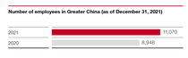 At the end of 2021, BASF employed 11,070 people in Greater China (2020:8,948).