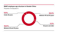 In 2021, 26.9% of BASF employees in Greater China were female. The most substantial proportion (54.5%) of employees at BASF in Greater China was in the 26-39-year-old range.