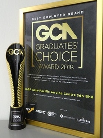 巴斯夫在吉隆坡的共享服务中心(BSSCKL)在560多个提名中脱颖而出,成功被马来西亚的在校大学生和毕业生票选为"毕业生首选10强雇主"(GCA),且巴斯夫是其中唯一的化学公司。"毕业生首选10强雇主"由HRINCAMPUS——马来西亚知名毕业生在线求职门户网站推出。我们的共享服务中心(BSSCKL)为在校生和应届毕业生提供实习和就业机会。