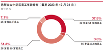 作为一家全球企业,我们致力于满足众多客户的差异化需求。我们希望在员工之间展现、珍视并推动多元化的发展,以提升他们工作的创造力、积极性以及归属感。我们制定全球目标以提升女性领导力,目标在2030 年之前将女性领导者的比例提高到30%。目前,我们已取得显著进步并持续回顾目标。截至2023 年底,巴斯夫集团女性管理人员占全球管理人员总数的28.4%(2022 年:27.2%)。在大中华区,女性管理人员占比为29.8%(2022 年为29.3%)。无论性别、年龄以及国籍,巴斯夫致力于为所有员工提供平等的就业机会。到2023 年底,巴斯夫大中华区女性员工比例为 26.8%(2022 年:27.1%),26 岁至39 岁年龄段的员工占比最高,为51.3%。