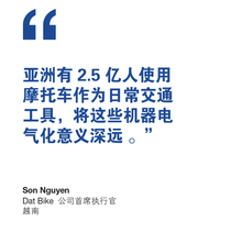 电动摩托车公司 Dat Bike 的创始人兼首席执行官 Son Nguyen 的使命是让数百万人能使用电动交通工具。Nguyen 在越南出生和长大,高中计算机程序员的技能让他进入美国伊利诺伊大学,并最终使得他成为一家硅谷公司的软件工程师。