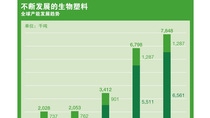 目前,生物塑料依旧是市场中的小众之选。每年全球所生产的3亿吨塑料制品中,生物塑料所占份额不足1%。不过,欧洲生物塑料协会(European Bioplastics)的市场数据显示,这一数字有望在未来几年飙升。到2019年,全球生物塑料产能将翻两番,由2015年约200万吨增至约780万吨,其中80%左右的生物塑料由生物基原材料制成,但不可生物降解或堆肥。