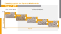 这是一种新研发成功的创新型发泡剂产品。其发泡能力强且消泡率低,这有助于在生产过程中以较低的用量产生中等大小的气泡,可完美平衡石膏板密度和强度。