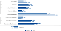 b Seit dem 1. Januar 2025 wird das Geschäft mit Chemie- und Raffineriekatalysatoren als Teil des Unternehmensbereichs Performance Chemicals im Segment Industrial Solutions berichtet. Zuvor wurde es im ehemaligen Unternehmensbereich Catalysts im Segment Surface Technologies geführt. Die Vorjahreswerte wurden entsprechend angepasst.