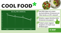 Wir sind Mitglied der internationalen Initiative „Cool Food Pledge“ mit dem Ziel die lebensmittelbedingten Treibhausgasemissionen bis 2030 um 25% zu senken. Die Auswertung unseres Startpunktes zeigt: