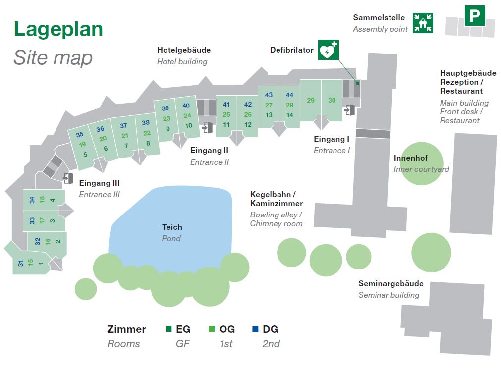 - Flexible, helle Tagungs‑ und Gruppenräume