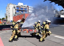 Beteiligt waren Zug 1 - Süd (Zugführer und 18 Einsatzkräfte) und Zug 2 - Nord (Zugführer und 18 Einsatzkräfte), sowie die Leitstelle der Feuerwehr (Dienstaufsicht und 2-3 Disponenten) und insgesamt ca. 18 Einsatzfahrzeuge der Feuerwehr. Der Führungsdienst bestand aus A-Dienst, B-Dienst, TE-Messwarte, Technischer Einsatz-Leitwagen, Beauftragter des Lenkungs-Ausschuss-Gefahrenabwehr (LAG). Insgesamt waren mit allen Beteiligten ca. 100 Einsatzkräfte und rund 24 Einsatzfahrzeuge im Einsatz.