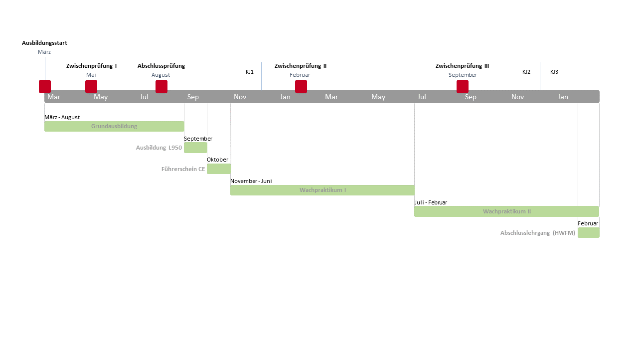 Hier finden Sie alle Ausbildungswege von der Grundausbildung bis hin zum B6-Dienst.