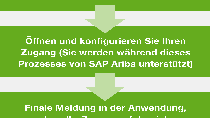 - Wenige Wochen später erhalten Sie einen Registrierungs-Link von SAP Ariba und werden Schritt für Schritt durch die Portalanmeldung geführt. Eine Übersicht über den Ariba Network Registrierungs-Prozess finden Sie in der unten stehenden Grafik.