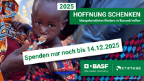 Jedes Kind verdient eine Zukunft – doch in Burundi, einem der ärmsten Länder der Welt, ist dies keine Selbstverständlichkeit. Jedes zweite Kind ist von akuter Mangelernährung betroffen und damit in seiner gesamten körperlichen und geistigen Entwicklung gefährdet. Die BASF Stiftung setzt sich deshalb gemeinsam mit UNICEF dafür ein, den Kreislauf von Hunger und Armut zu durchbrechen und den Jüngsten in Burundi Hoffnung zu schenken.