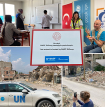 BASF-Mitarbeitende aus der Türkei hatten gemeinsam mit der BASF Stiftung die Gelegenheit, die wirkungsvolle Arbeit von UNICEF im Erdbebengebiet in der Türkei mitzuerleben: Auf einer Exkursion mit UNICEF konnten sie Einblicke in die immer noch andauernden katastrophalen Auswirkungen des Erdbebens in der Türkei und Syrien vor mehr als einem Jahr gewinnen. Sie konnten die Plattenbauschule besuchen, die durch die Spenden der BASF-Mitarbeitenden ermöglicht wurde, und die Arbeit, die dort geleistet wird, aus erster Hand verfolgen.