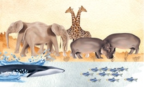 As well as regularly seeking shade, elephants coat themselves with mud. When the mud dries it becomes a thick and effective protective barrier against the sun’s rays.
