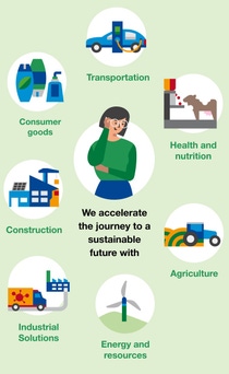 We substitute fossil-based raw materials in our production chain with the equivalent amount of renewable feedstocks, such as bio-naphtha and biomethane. These organic raw materials are produced from organic waste such as leftover food, vegetable oils, agricultural waste and crops. The renewable feedstocks are then attributed via the biomass balance approach to a wide range of BASF products, including superabsorbents, dispersions, plastics, surfactants and intermediates. This approach helps protect the environment without compromising on the high-quality our customers and consumers expect.