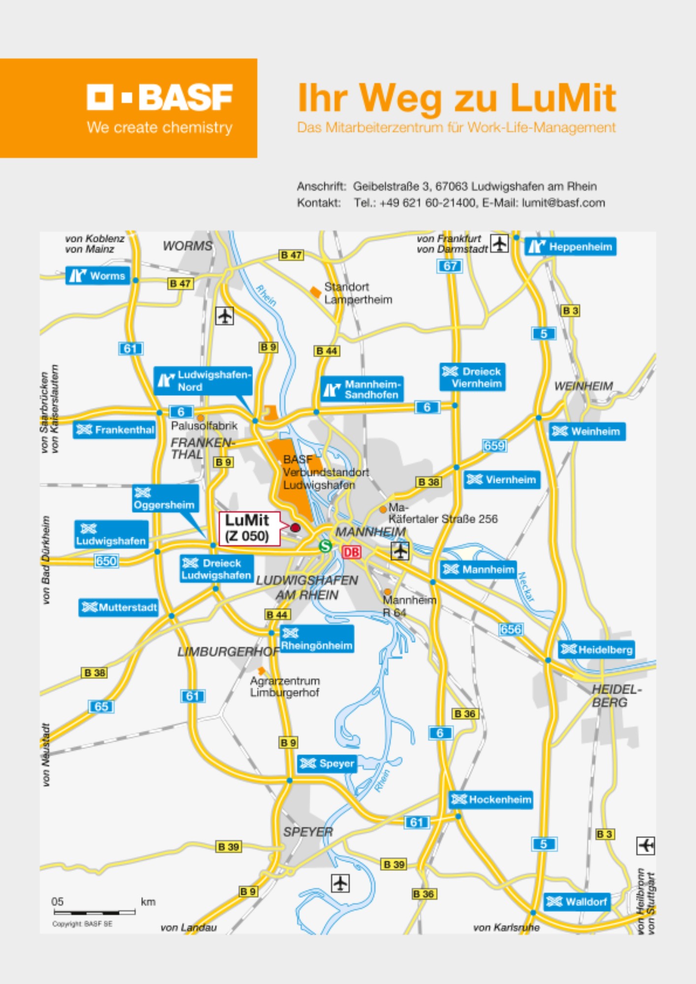 The “Lu” in the center’s name stands for Ludwigshafen, BASF’s headquarters. The “Mit” stands for Mitarbeiter (employees), but also for Mitmachen (joining in) and Miteinander (together). This is because the center should be a meeting place for staff and a place where they receive support that helps them come to terms with their individual challenges.
