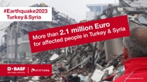 In addition to many local initiatives by colleagues in Türkiye, BASF SE donated EUR 500,000 in emergency aid to the German Red Cross and launched an employee giving campaign for mid‑term support. This raised more than EUR 844,000, which BASF SE doubled to EUR 2.1 million. Together with BASF representatives and local colleagues, BASF Stiftung deployed the funds for a package of support focused on two primary goals: